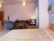 на Северном Гоа на пляже Калангут в 45 км от аэропорта. Пляж в 500 м от отеля, лежаки и зонтики за доп.плату.